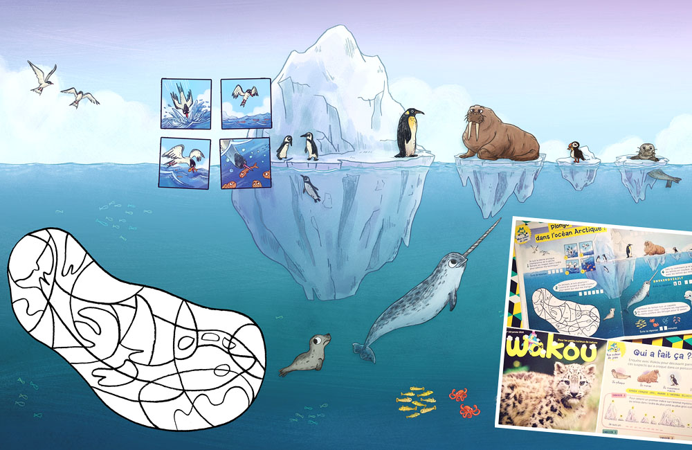 Illustrations de trois pages de jeux pour le magazine WAKOU n°322 / Janvier 2016 (Milan Presse)